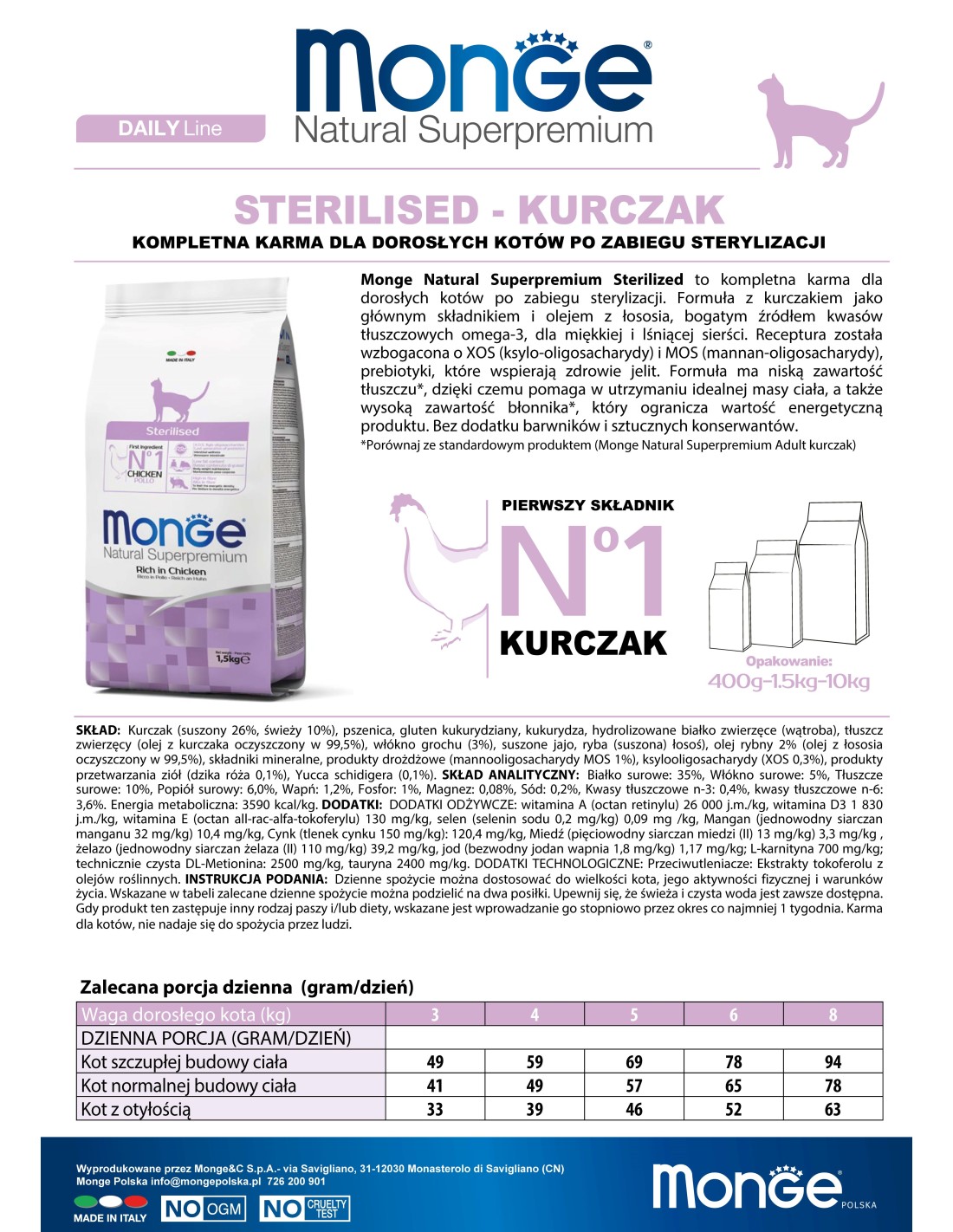 MONGE NATURAL SUPERPREMIUM STERILISIERTES MONOPROTEIN-HUHN.