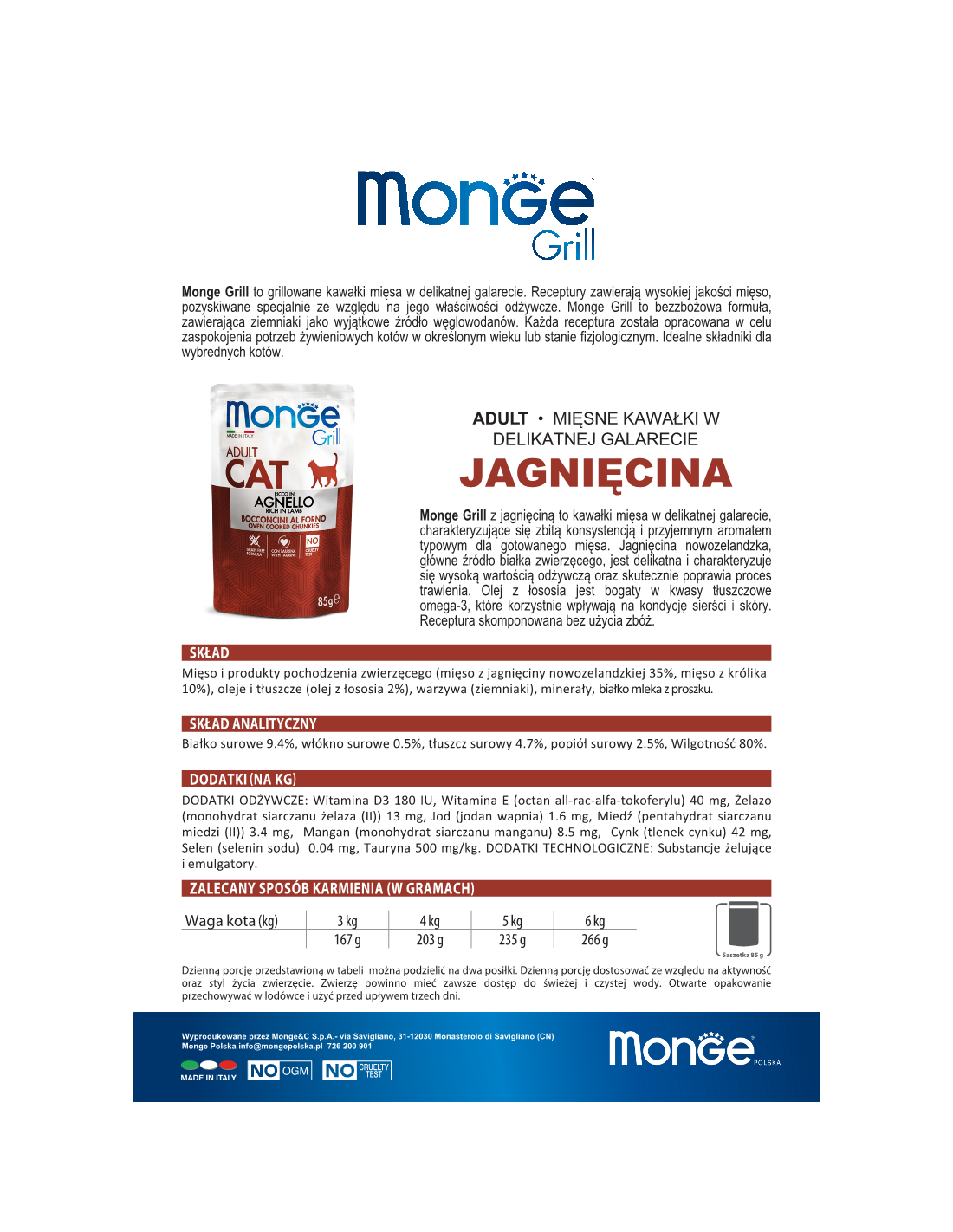 MONGE GRILL Cat Adult Lamb 85g