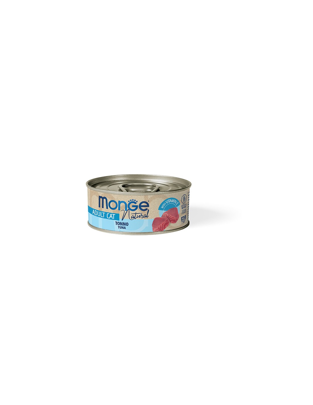 Monge Natural Tuna is a complementary steam cooked food for adult cats, prepared with ingredients selected for their nutritional values. Skipjack tuna recipe enriched with Fructo-oligosaccharides (F.O.S.) for intestinal well-being. A refined taste, suitable for the most sophisticated palates. Supports the daily activities of the adult cat with a high energy level. Made in Thailand with no added dyes or preservatives. Crueltyfree, Dolphin Save and Sea Water Fish.