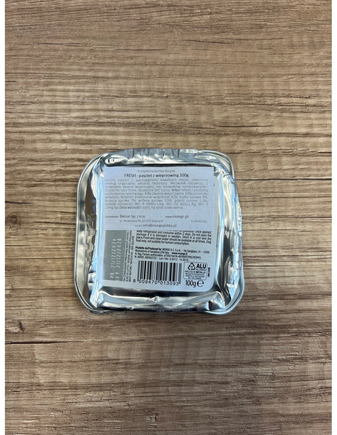 MONGE FRESH delicious pate with fresh pork is a complete food developed to support your pet's well-being on a daily basis. The recipe contains no hydrogenated fats. The fluffy and tasty pate from the Fresh line is the ideal meal for small dogs and a treat for larger dogs. Monge Fresh is made in Italy, not tested on animals and has no artificial additives or colours.