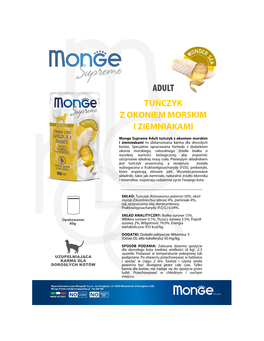 Monge Supreme saszetka Adult Tuńczyk z okoniem morskim i ziemniakami 80g