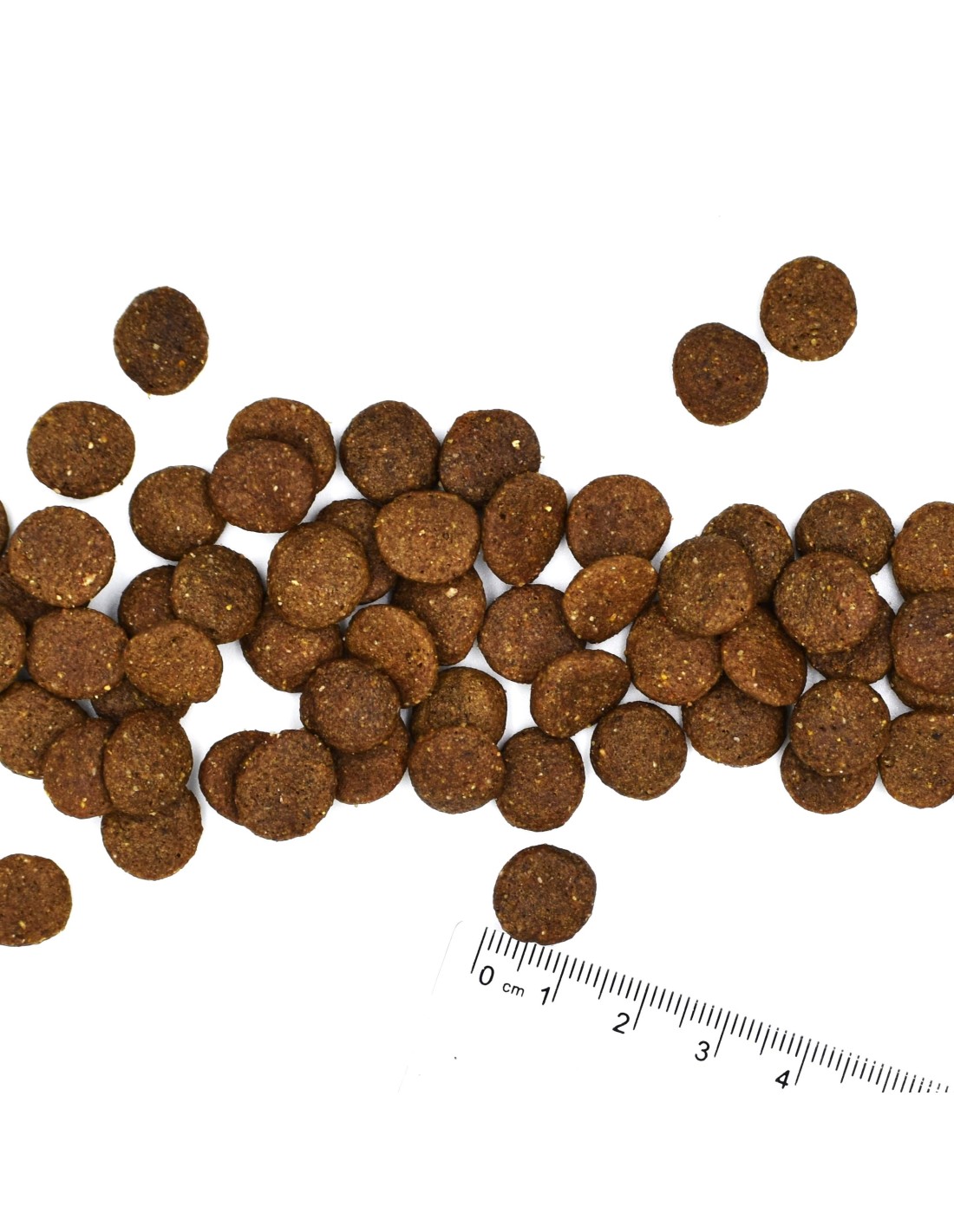 Posiada zrównoważoną zawartość białka i węglowodanów. Obecny w karmie świeży kurczak warunkuje wysokie walory smakowe i łatwą przyswajalność pokarmu oraz, w połączeniu z wysoką zawartością chlorku choliny i bogactwem witamin i minerałów z wodorostów, zapewnia, że nasi przyjaciele doskonale trawią pokarm bez gromadzenia cholesterolu. Niewielkie krokieciki doskonale uzupełniają zapasy składników odżywczych i energii zużytej w ciągu dnia. Karma jest tworzona tylko z wyselekcjonowanego mięsa najwyższej jakości.