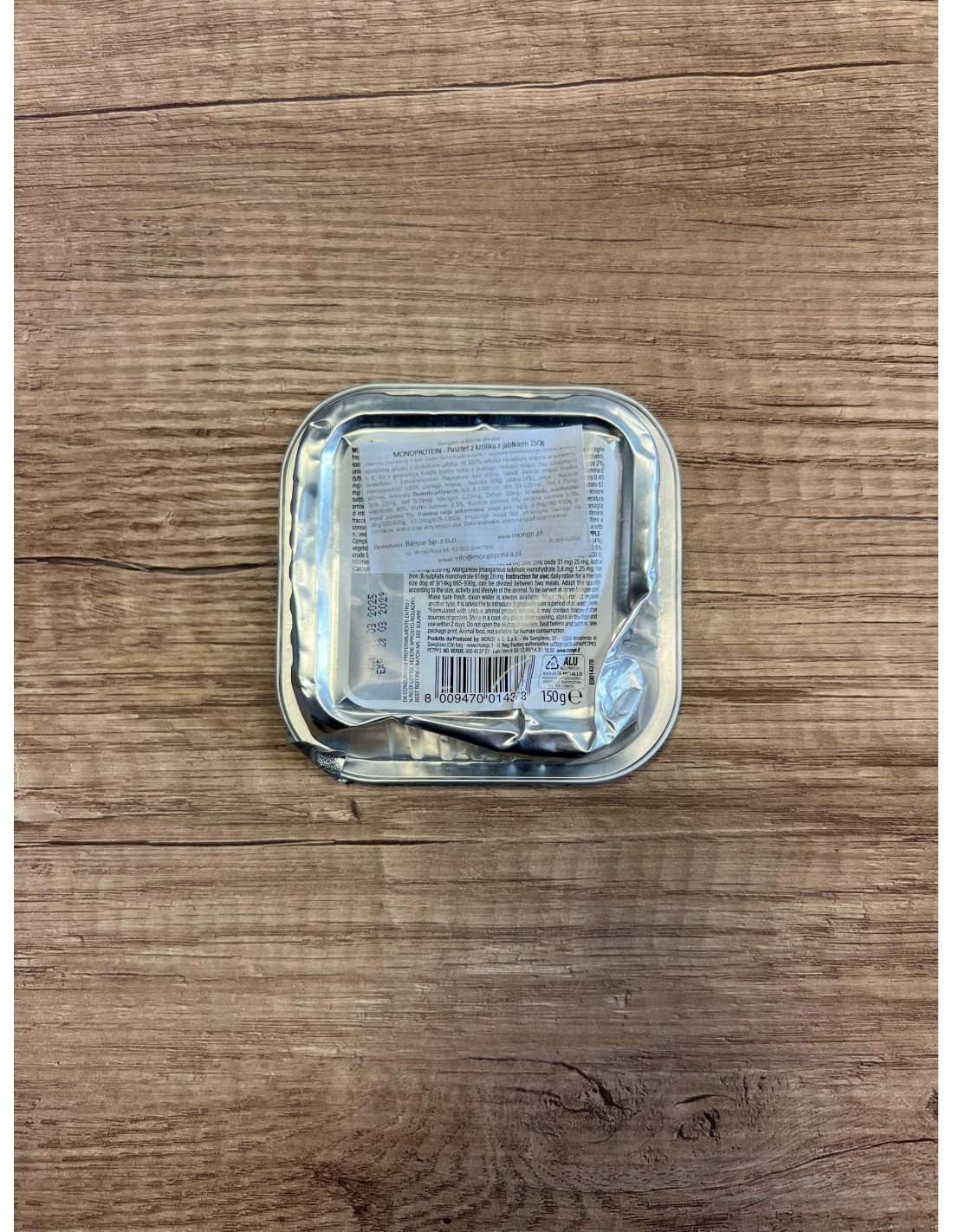 SKŁAD: Świeży królik (co odpowiada 100% użytego mięsa), tapioka (5%), jabłko (4%), oleje i tłuszcze roślinne (olej słonecznikowy rafinowany), minerały.