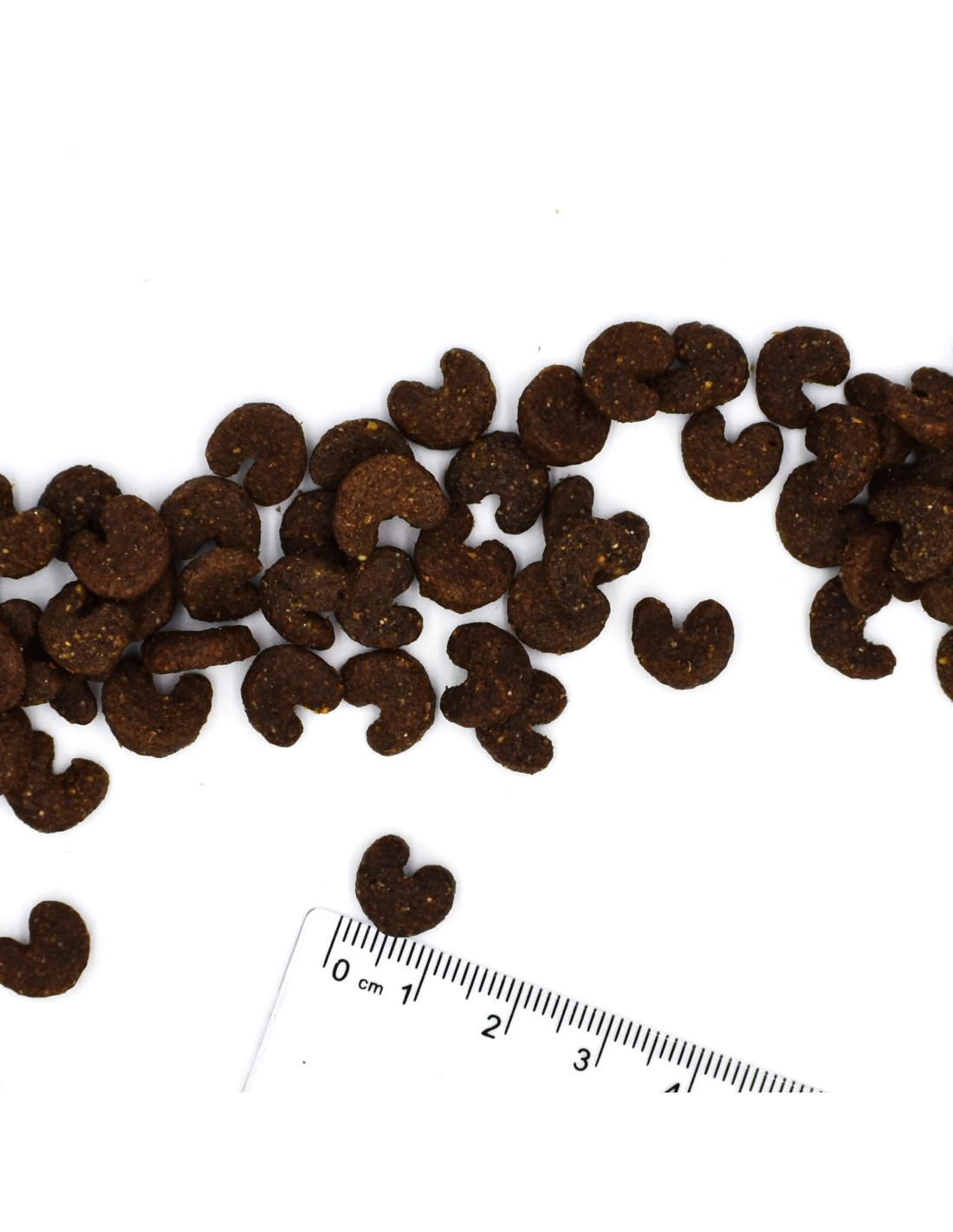 SKŁADNIKI ANALITYCZNE: Białko surowe: 26%, Włókno surowe: 2,5%, Tłuszcz surowy: 15%, Popiół surowy: 6,5%, Wapń: 1,7%, Fosfor: 1,1%, Kwasy tłuszczowe n-3: 0,5%, Tłuszcze n-6 Kwasy: 3,5%, Metabolizowana energia: 4070 kcal/kg.